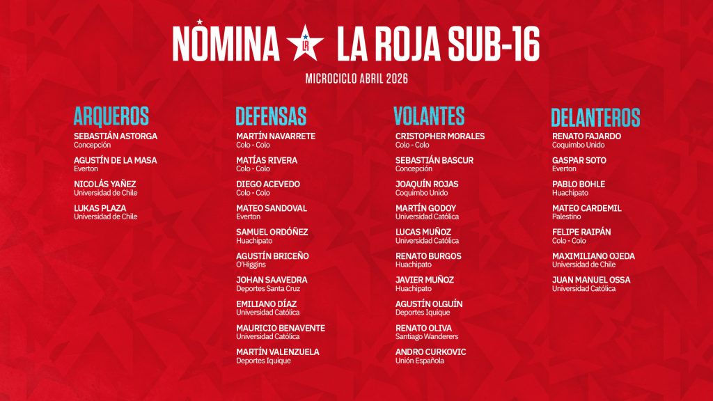 La Selección Chilena Sub-16 realizó sus trabajos con un total de 31 jugadores en este microciclo, enfocados en la preparación de la generación que disputará el CONMEBOL Sudamericano Sub-17 del año 2027. Este proceso anticipado busca consolidar una base sólida de jugadores, permitiendo un seguimiento continuo y un desarrollo integral de cara a la competencia internacional.