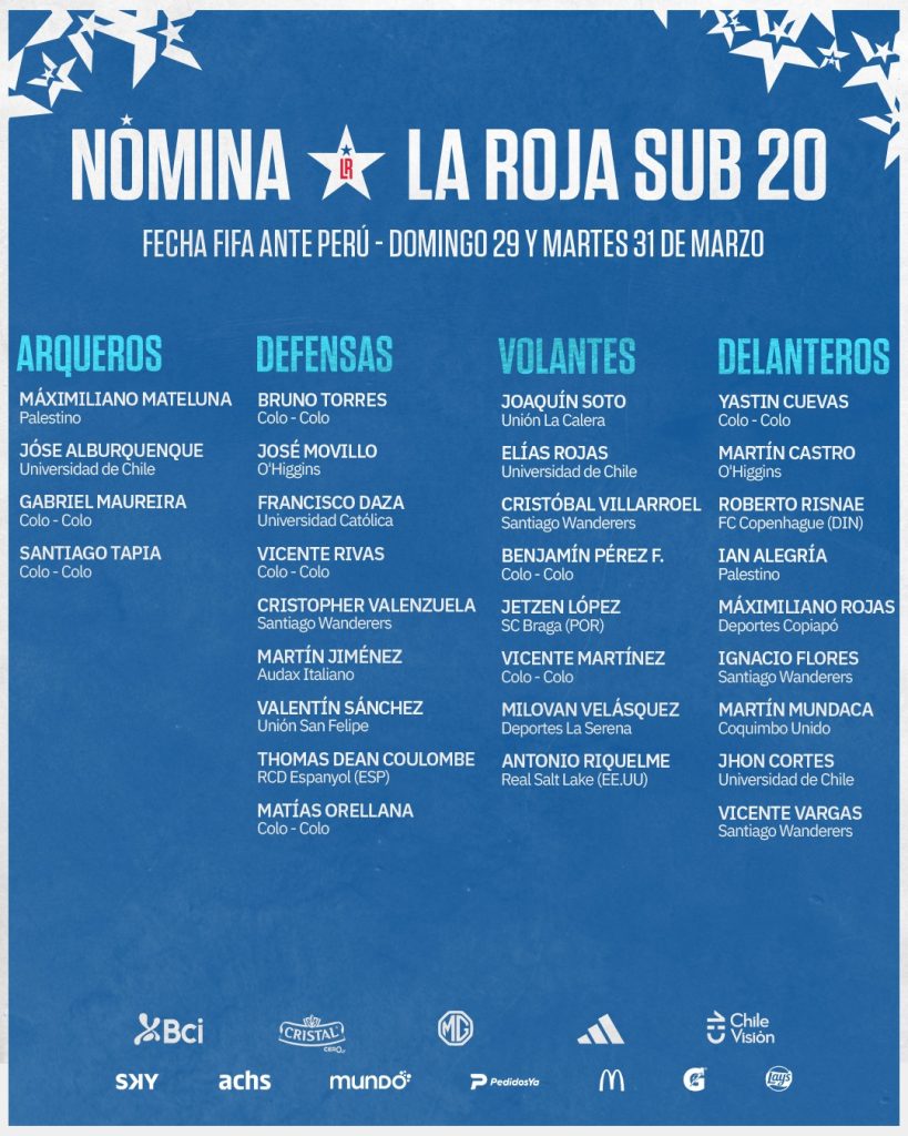 La Selección Chilena Sub-20 dio a conocer la nómina de 30 jugadores para un nuevo microciclo de preparación, en el marco de la planificación de la Jefatura de Selecciones Juveniles.